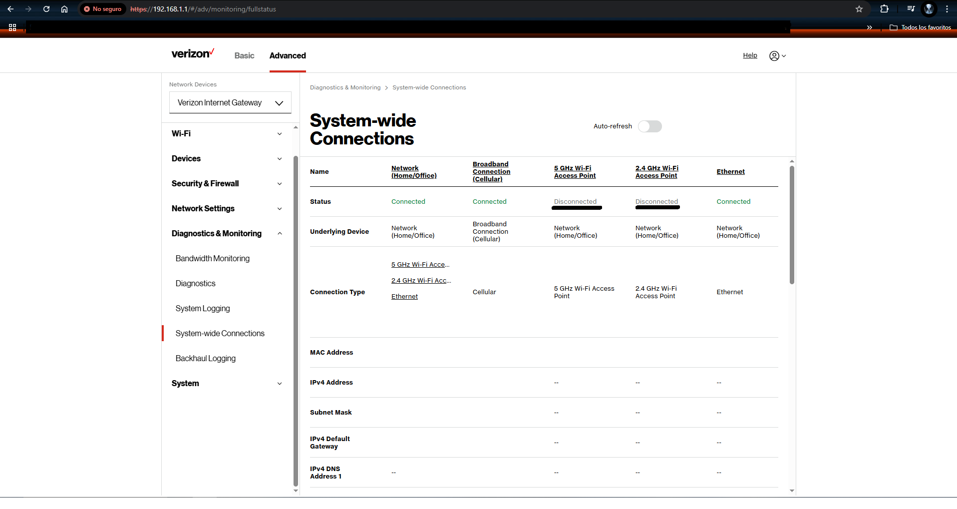 Back to the problem in hand, here we can start Troubleshooting the router, most settings are in the advanced section of this page, most common errors can be fixed here: